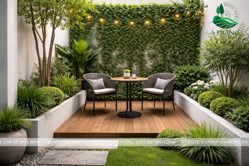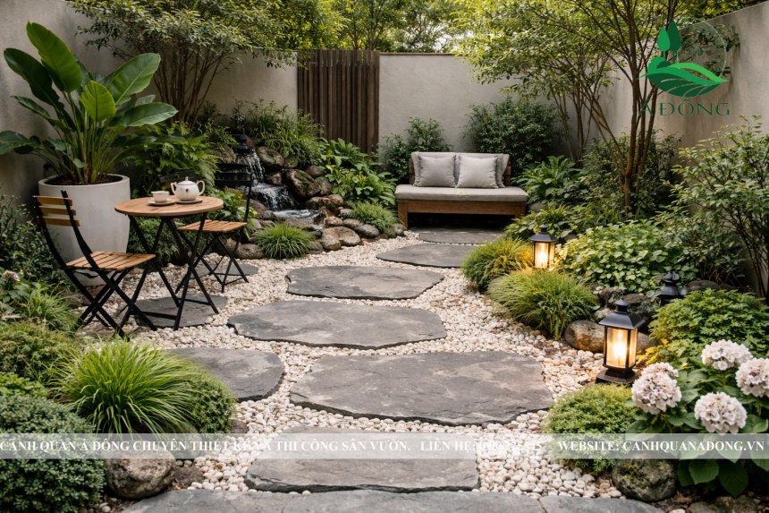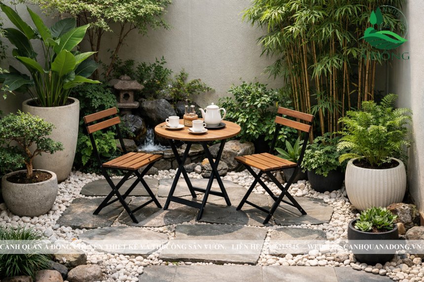 Tiểu cảnh sân sau hoặc góc nghỉ nhỏ